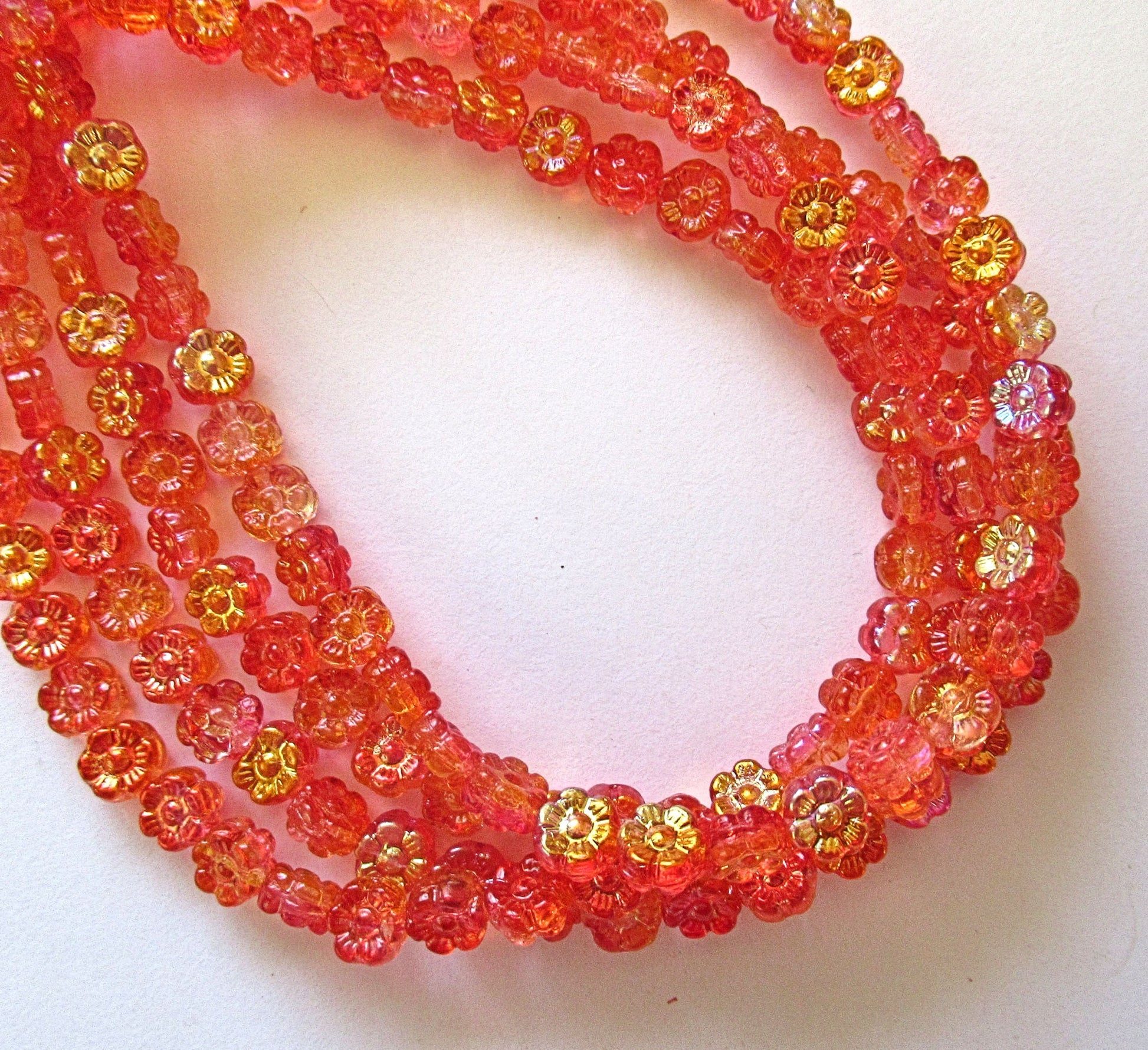 Thirty 6mm small Czech glass flower beads - hyacinth orange ab pressed glass flower beads - C00121