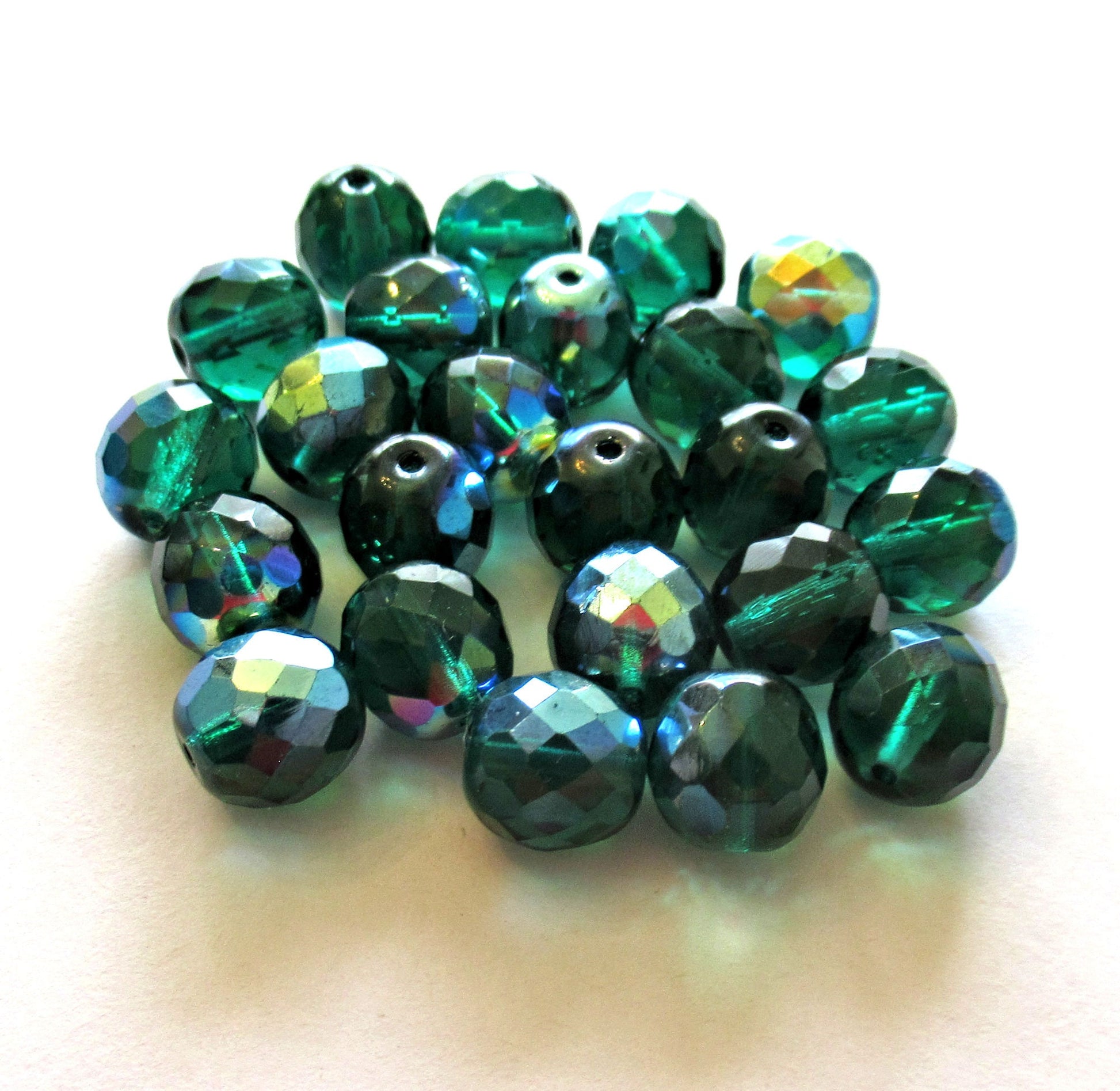 Twenty 10mm Czech glass beads - teal blue green AB beads - faceted round fire polished beads C00111