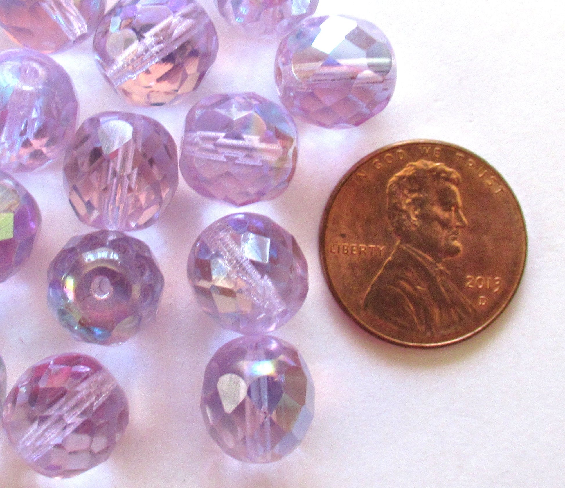 Twenty 10mm Czech glass fire polished faceted round beads - alexandrite, lilac, lavender AB beads C0089
