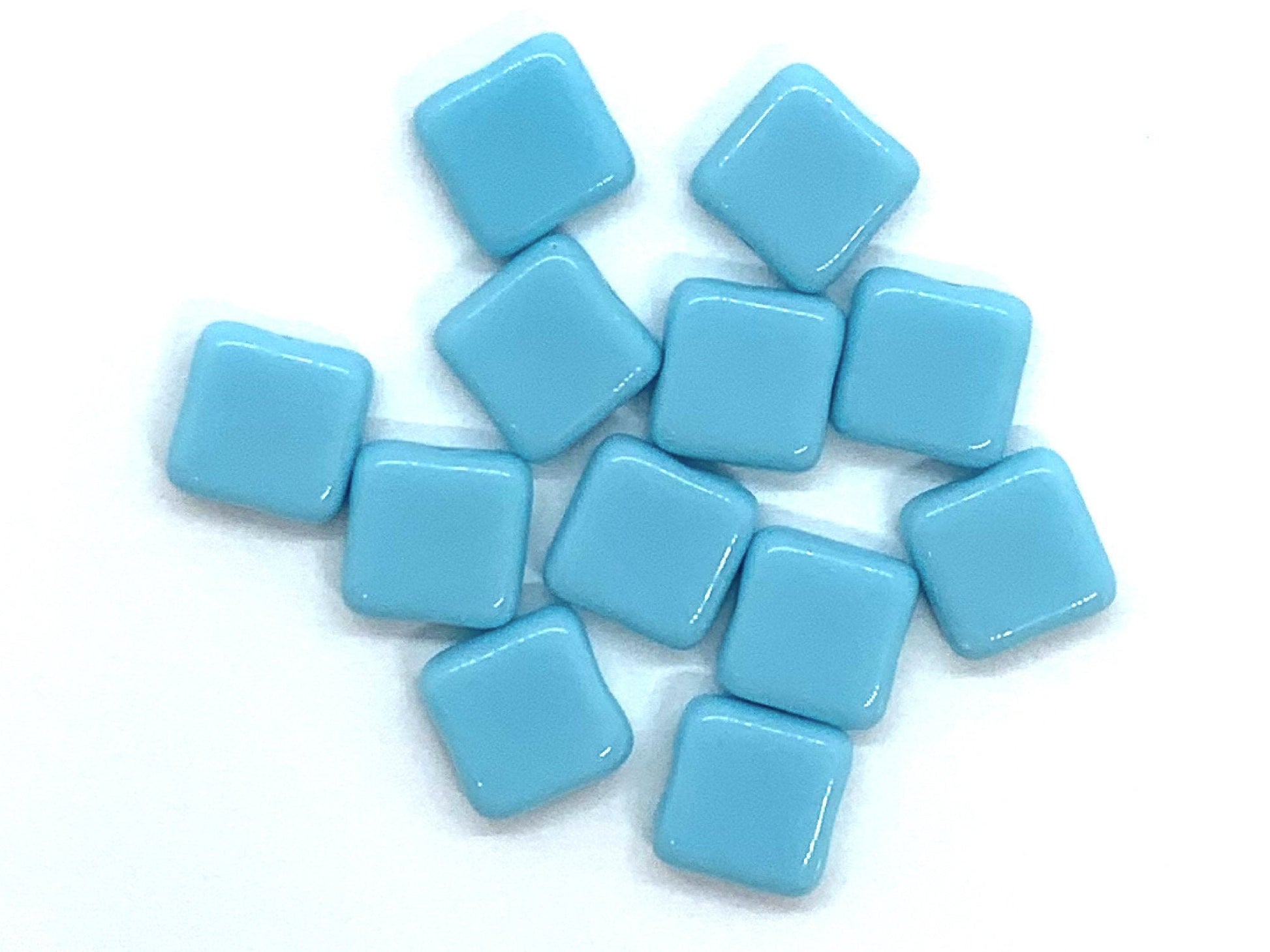 Twenty 9mm square Czech glass beads - opaque turquoise blue pressed glass beads C0001