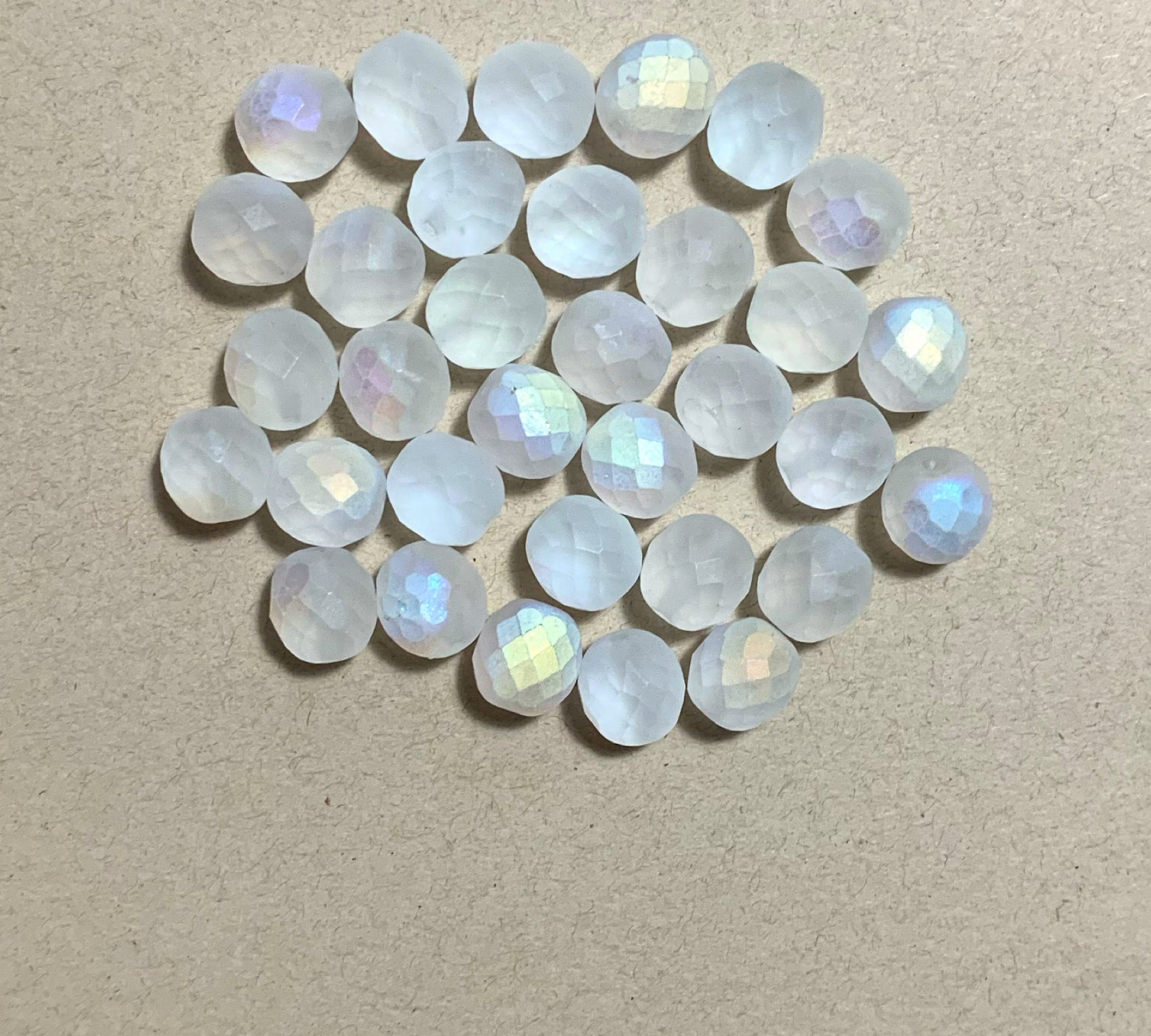 Twenty Czech glass fire polished faceted round beads - 10mm frosted crystal AB beads C0029