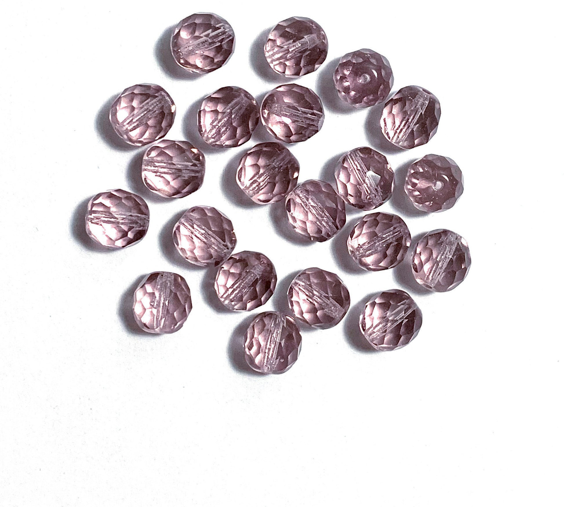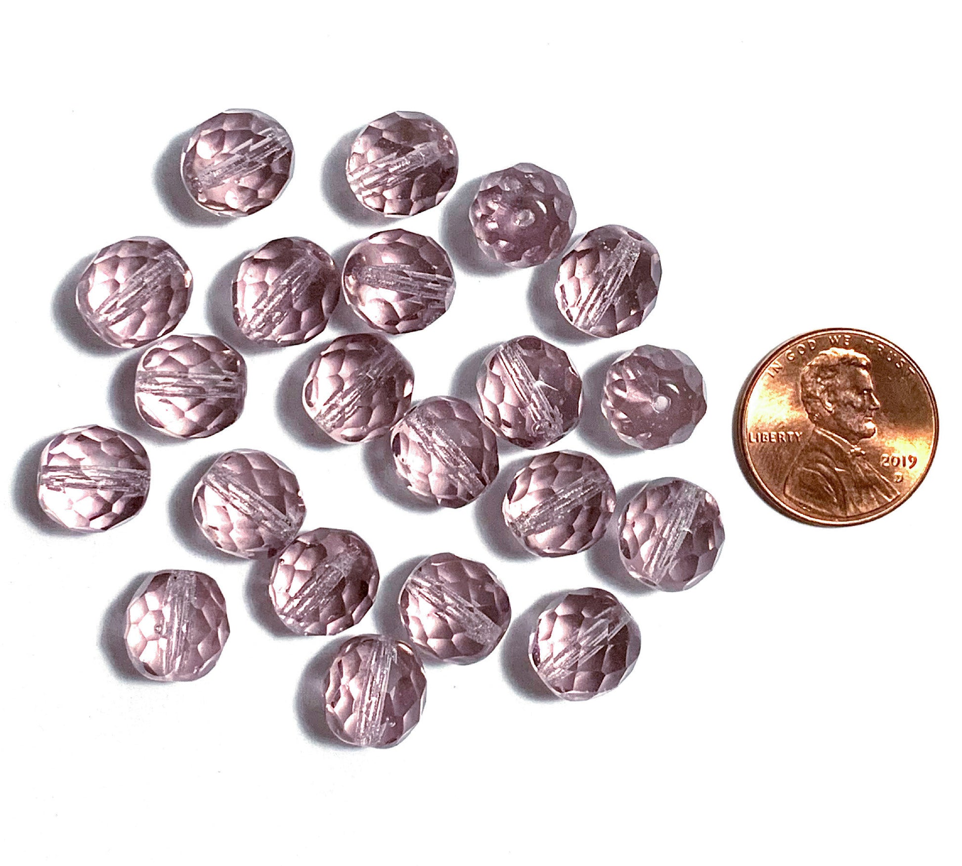 Twenty Czech glass fire polished faceted round beads - 10mm light purple amethyst beads C0068