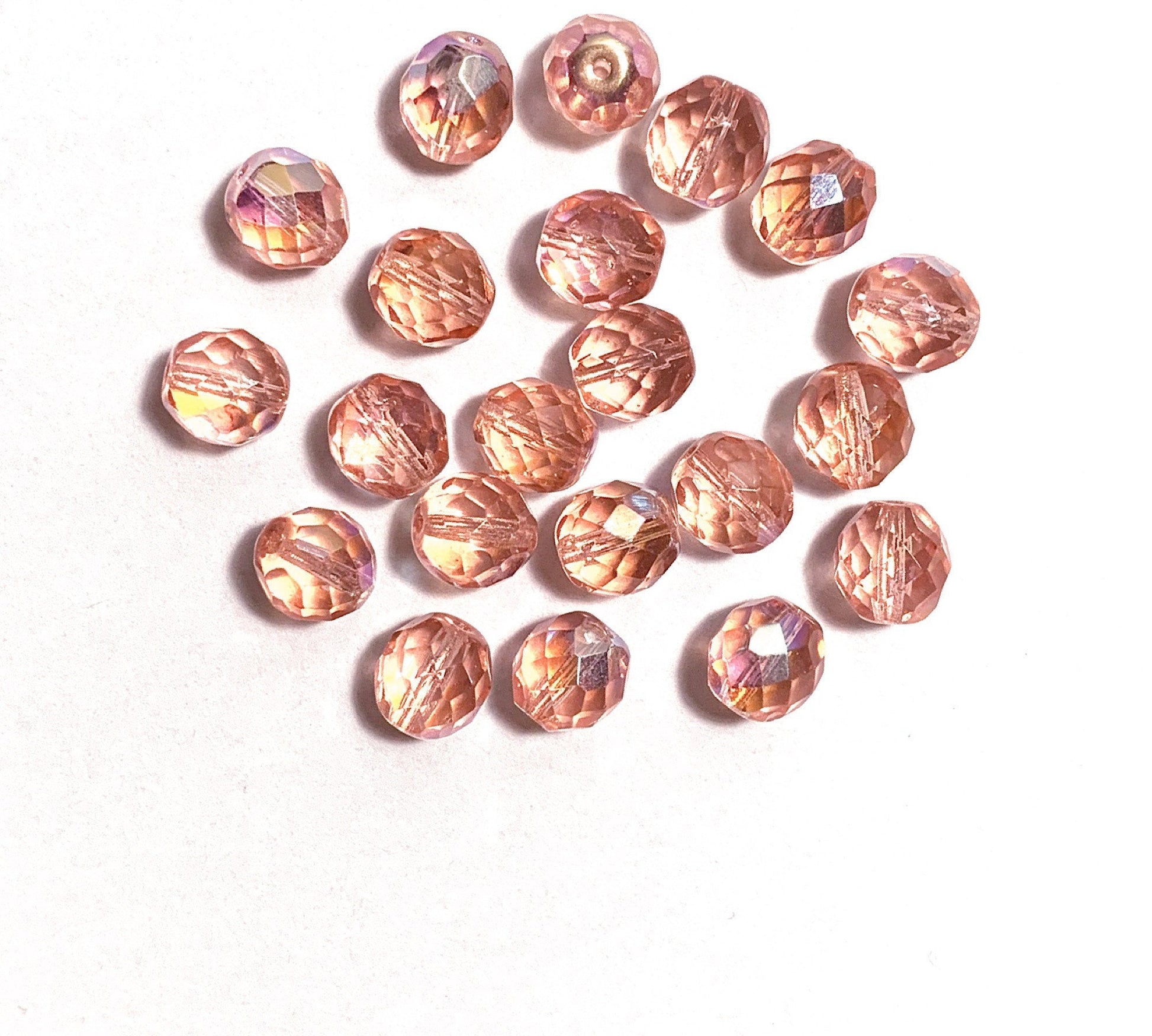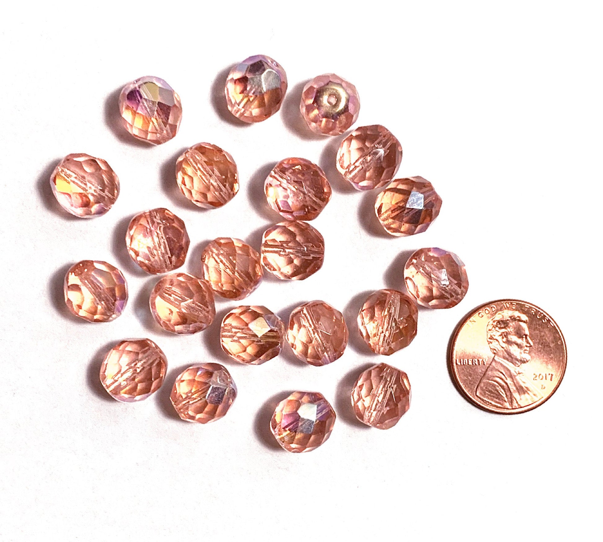 Twenty Czech glass fire polished faceted round beads - 10mm rosaline pink AB beads C0521