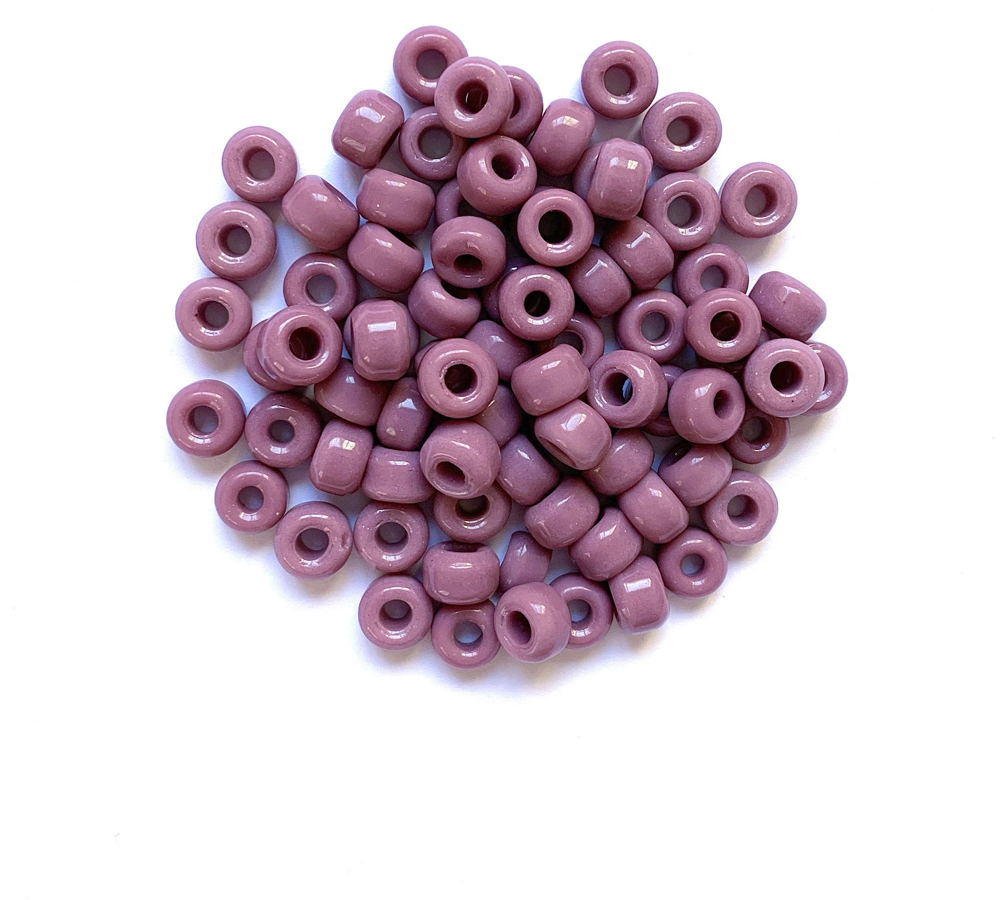 Twenty-five 9mm Czech glass pony, crow, roller beads - opaque purple lilac lavender large hole beads - C0062