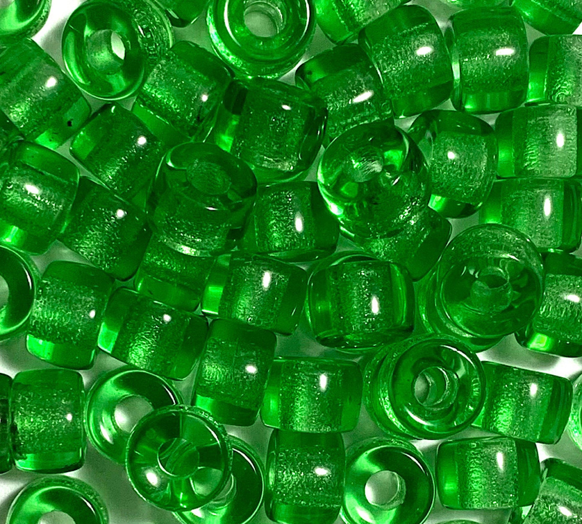 Twenty-five 9mm Czech glass pony, crow, roller beads - peridot green large hole beads - C0094