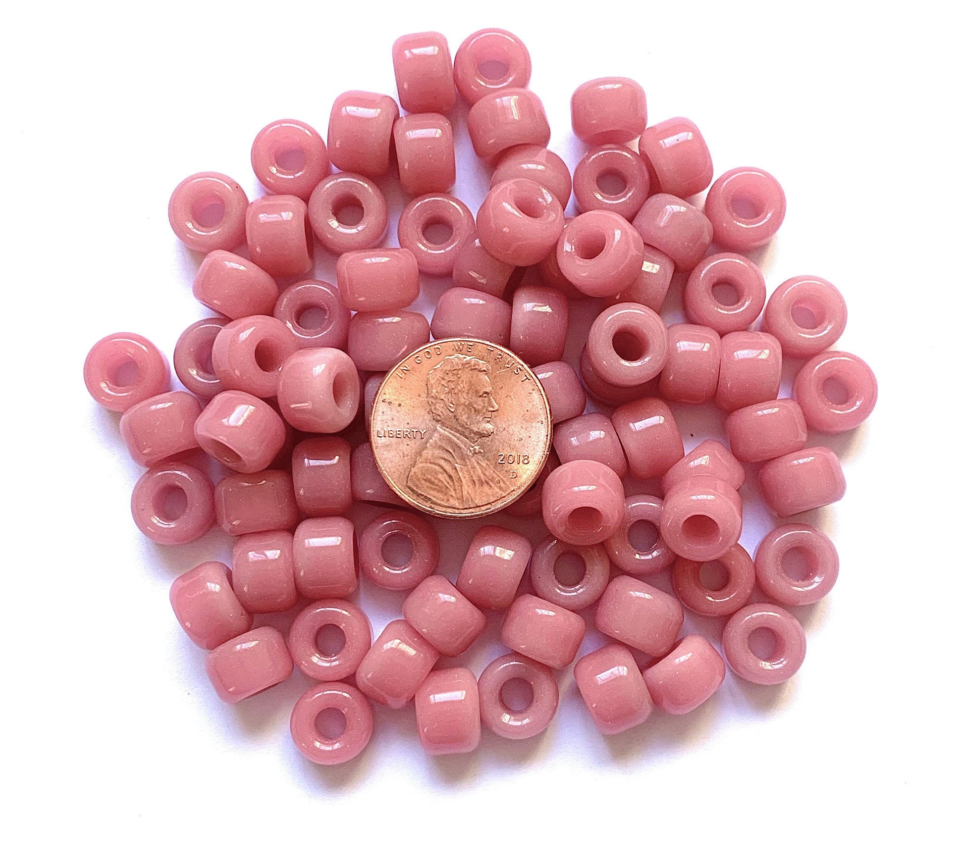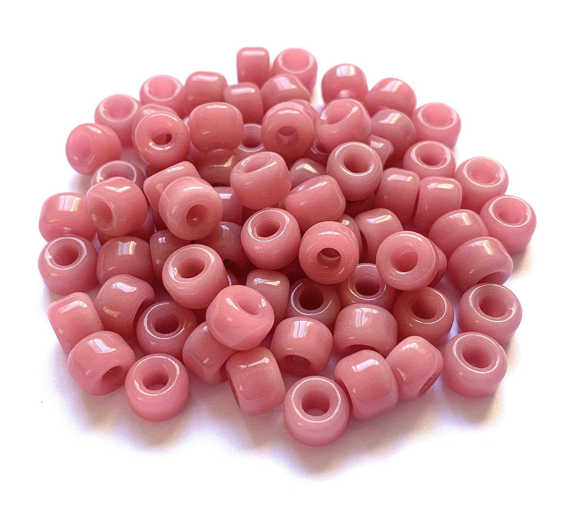 Twenty-five 9mm Czech glass pony, crow, roller beads - translucent milky pink opal large hole beads - C0082